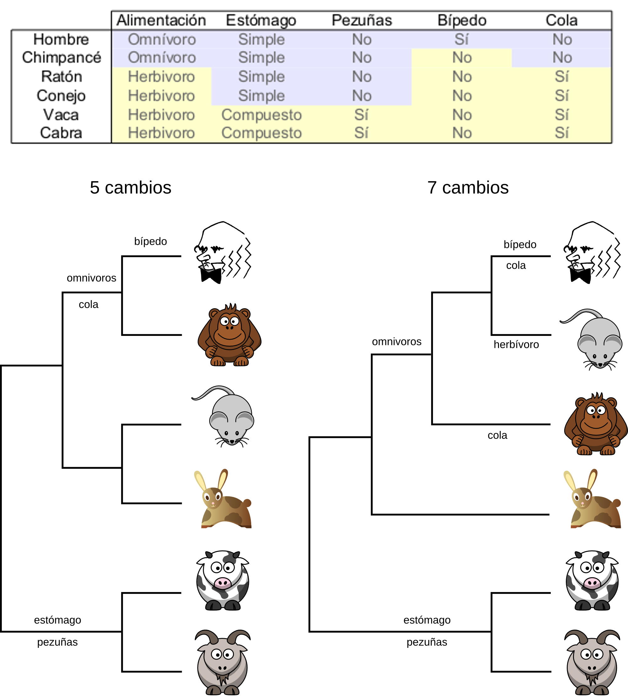 Phylogenetic analyses create the phylogenetic trees using the experimental evidences available. Some kinds of evidences are: