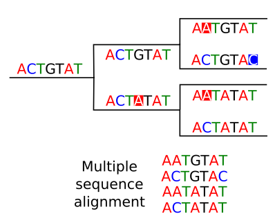 To do it we need some observation, the multiple alignment. We also have to chose beforehand the some mutation model that we want to assume.