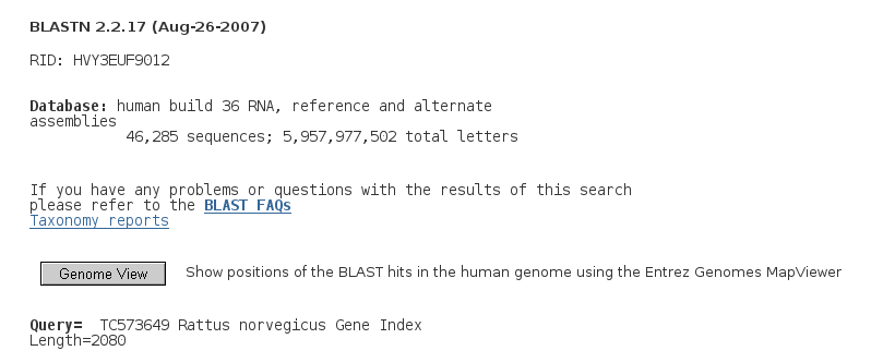 Como ejemplo realizar una búsqueda con megablast sobre la base de datos humana.
