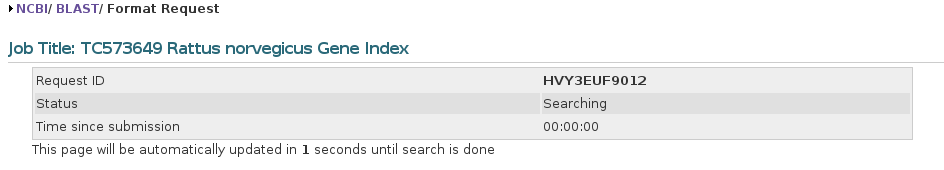Mientras el BLAST se está ejecutando veremos una página en la que se nos informa sobre el tiempo estimado que requerirá la búsqueda.