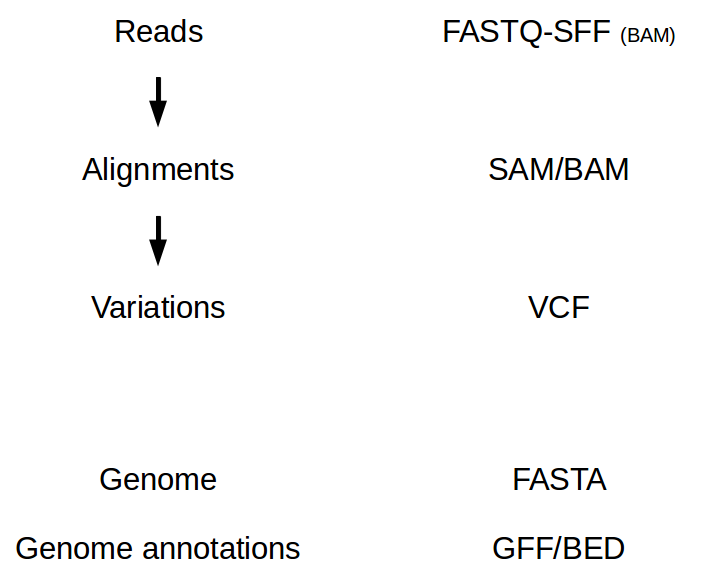 There are lots of file formats related to NGS analyses. The most common ones are: